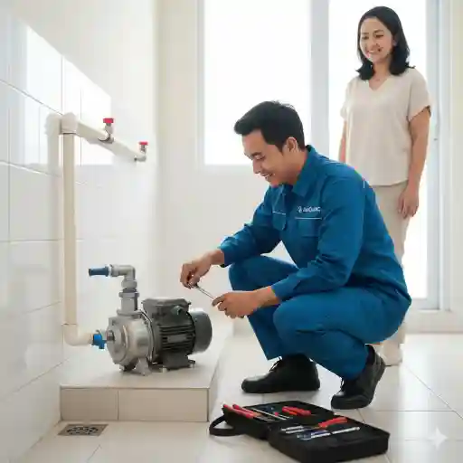 Perbaikan pompa air yang rusak, instalasi, dan penggantian pompa air baru sesuai kebutuhan di rumah.